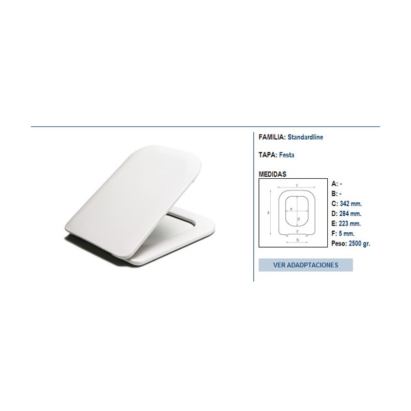 Bellavista: Almina / Duravit: D-Code / Gala: Gala 2000 / Ideal Standard: Conca/Tonca / Roca: The Gap / Sensea: Cretta / Vitra: Shift. Material: Duroplast. Color: Blanco. Bisagra: A13 (Standard).