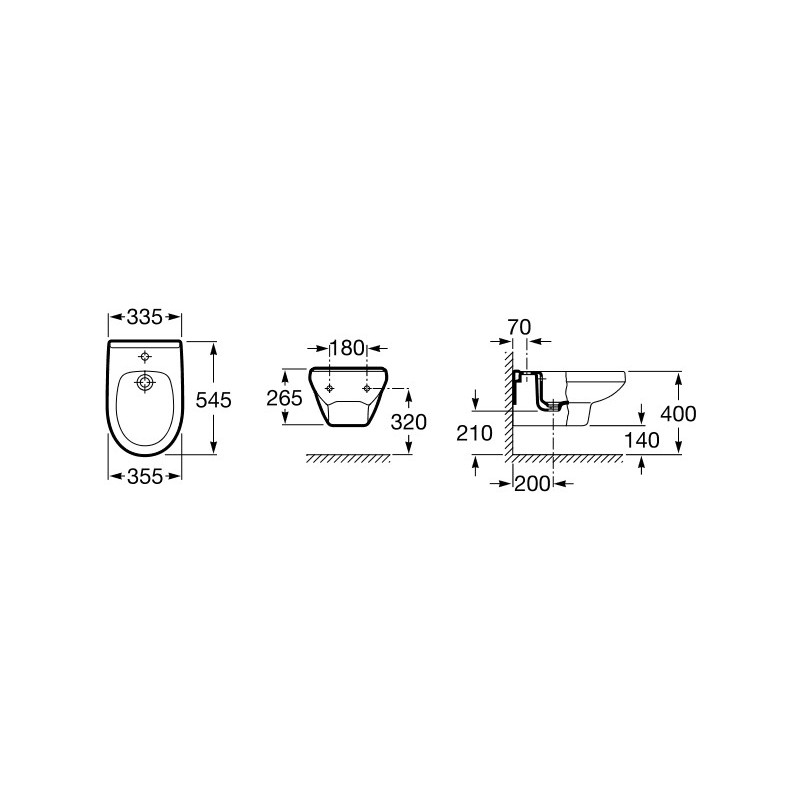 Bidé Roca Victoria de porcelana suspendido. Color BLANCO. Medidas: Longitud: 355 mm. Anchura: 545 mm. Altura: 260 mm. Agujeros para grifería: 1 Agujero. Forma: Redondo. Tipo de instalación: Suspendido.